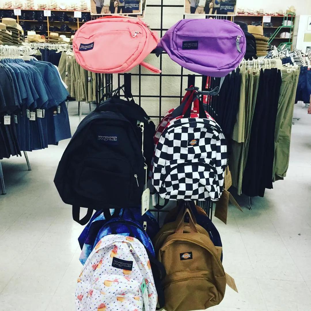 The dedicated footwear section is a testament to durability, with walls lined with heavy-duty boots from industry leaders like Redwing. Each pair is selected for its ability to withstand demanding work environments and provide lasting comfort. Nearby, you’ll find accessories for daily life and school, including classic backpacks and bags from brands like JanSport and Dickies, ready to be customized with on-site embroidery.